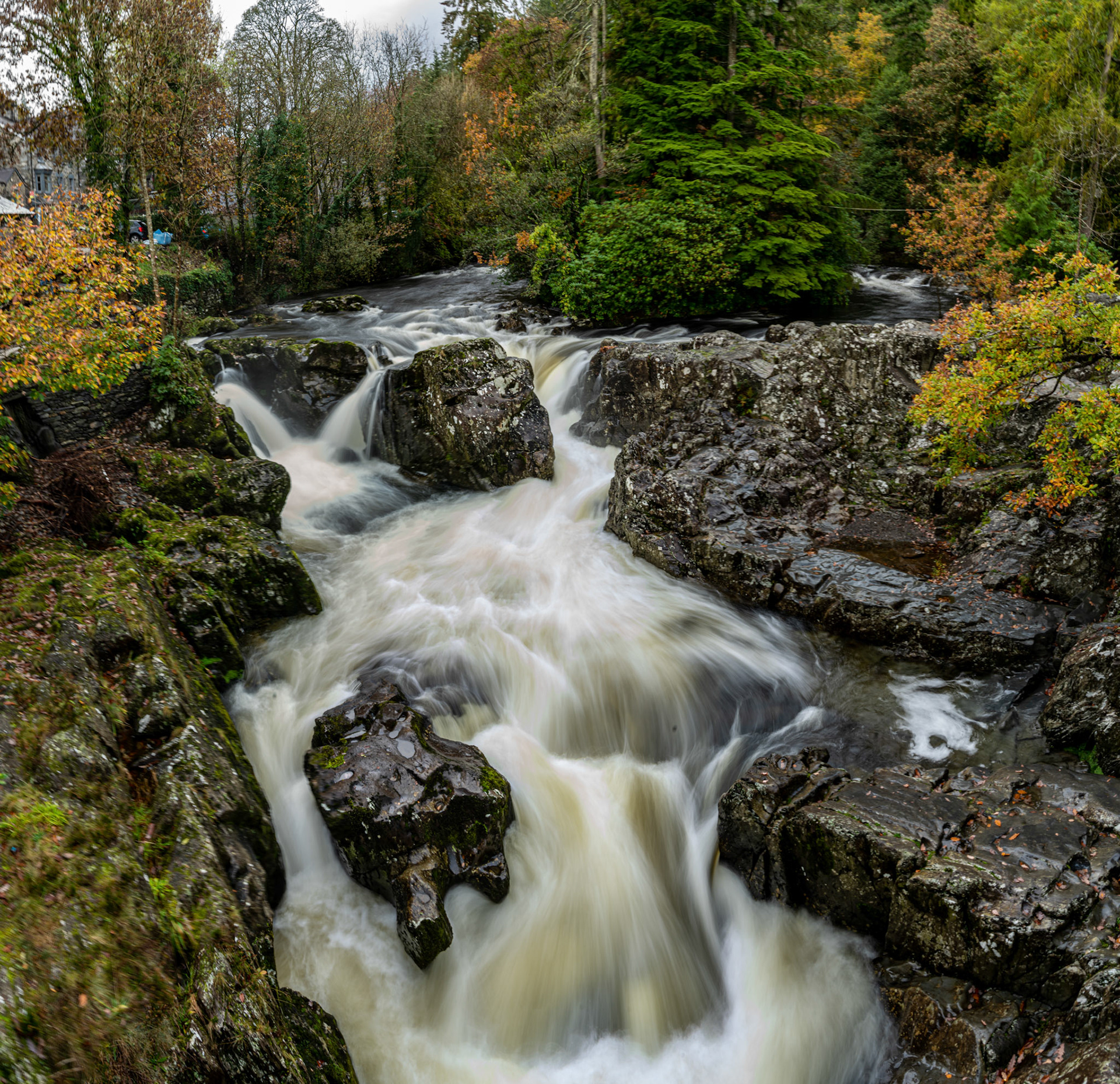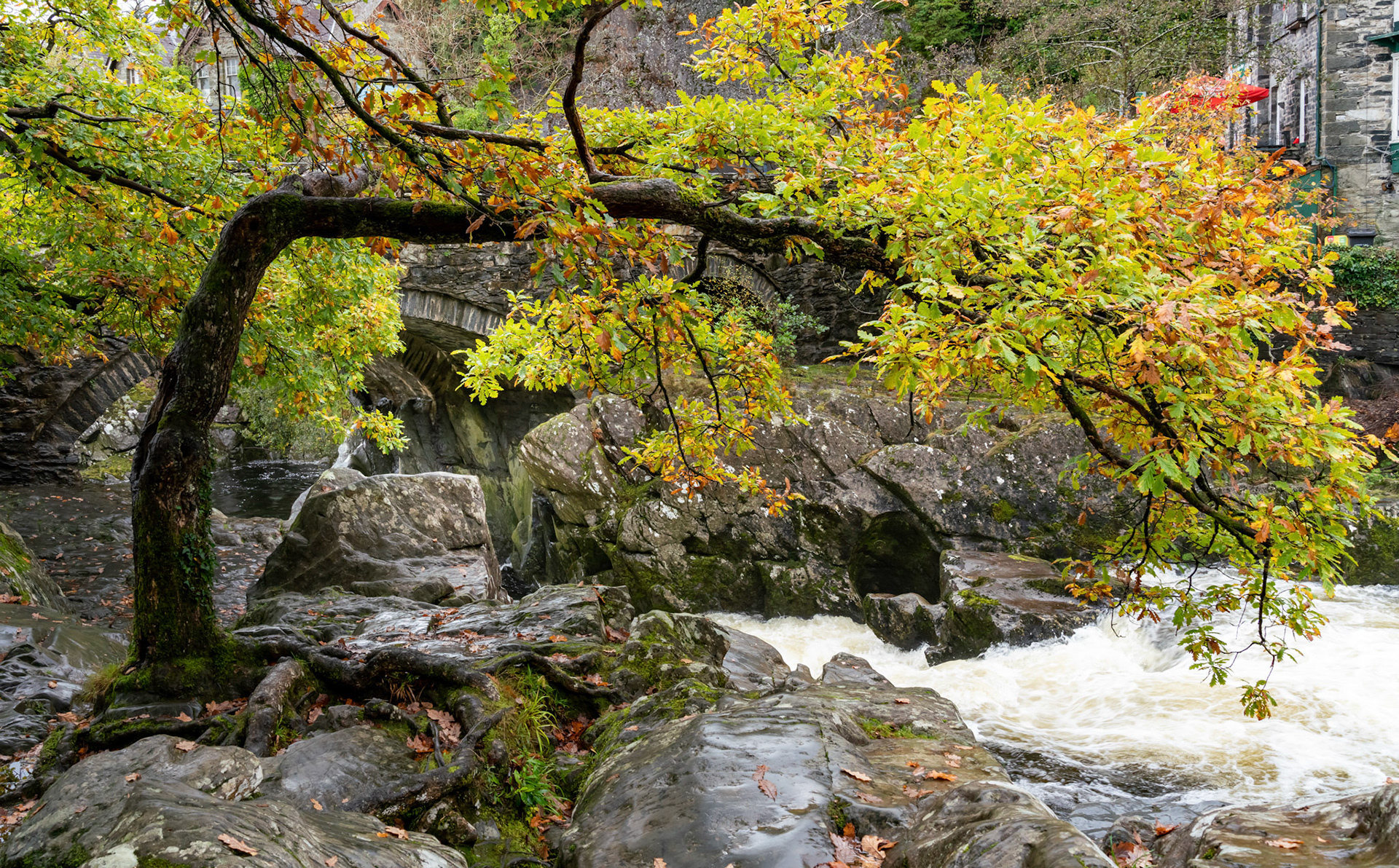 walking to Swallow Falls along the river and forest, North Wales